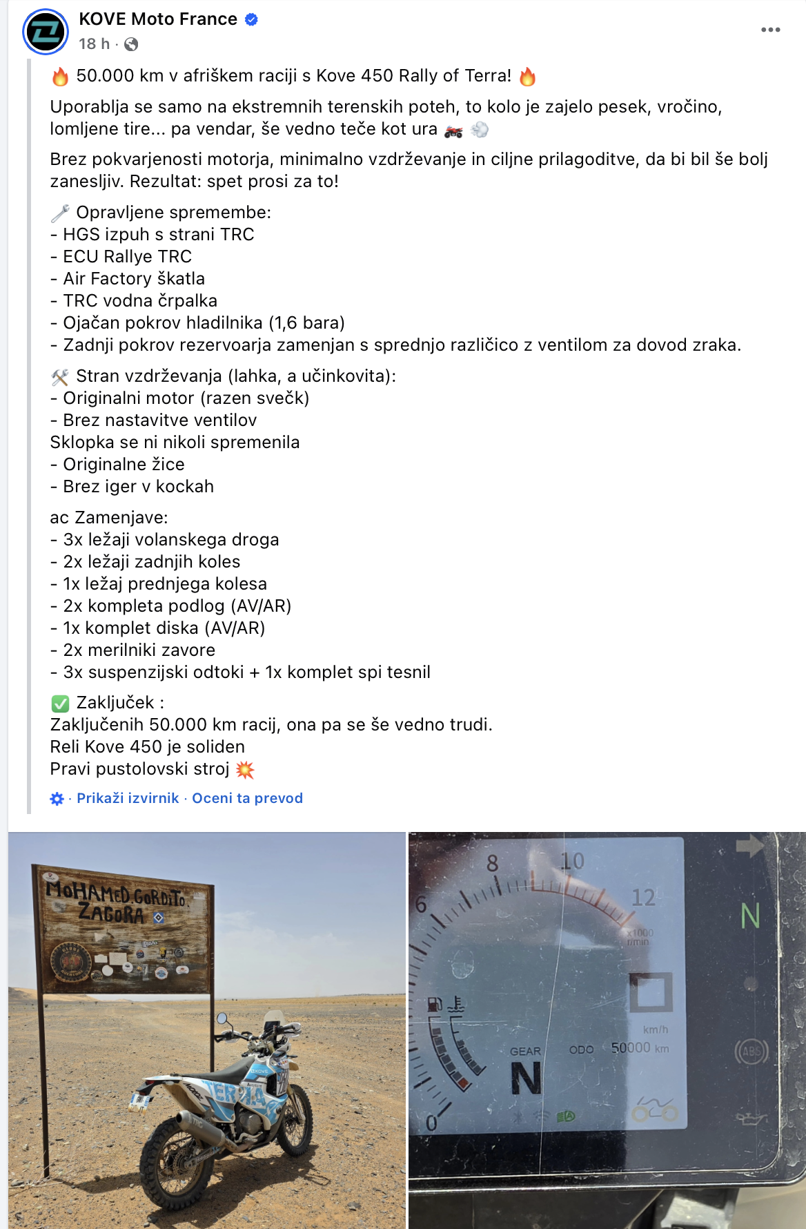 Lastniki Kove 450 Rally motorjev preizkušajo trpežnost materialov do skrajnih meja. Kove vas ne bo razočaral.